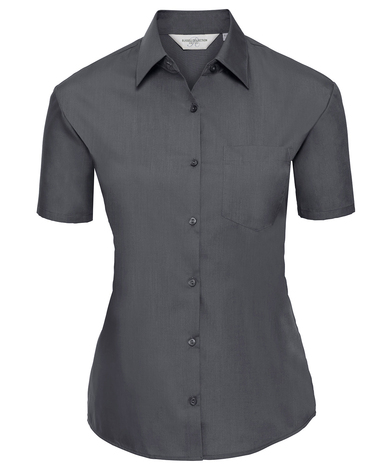 Women's Short Sleeve Polycotton Easycare Poplin Shirt In Convoy Grey