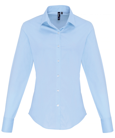 Cotton combined with elastane makes for a super soft, stretchy and comfortable fitted shirt for ladies..