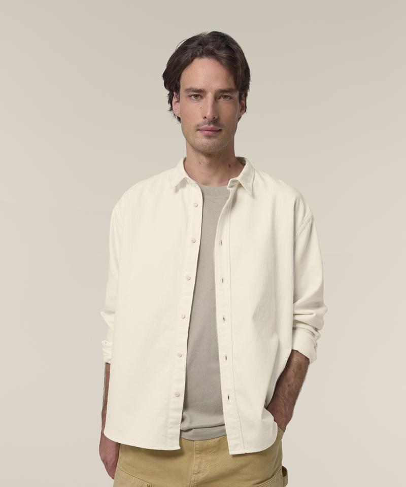 The Worker shirt, in cotton twill, is inspired by the workwear trend present in the retail market. Blending fashion and function, this unisex, relaxed-fit shirt can be worn solo or layered, and can also be styled for a classic or more streetwear-inspired look. Crafted from 100% organic cotton, the Worker shirt embodies eco-friendly unisex fashion, making it an excellent choice for those seeking sustainable, workwear-inspired blank clothing. Its sturdy 285gsm cotton twill fabric has a soft hand feel, yet is incredibly hard-wearing and durable, offering a great surface for any kind of customisation. With no back pleat, decoration possibilities on this organic cotton workwear shirt are endless..